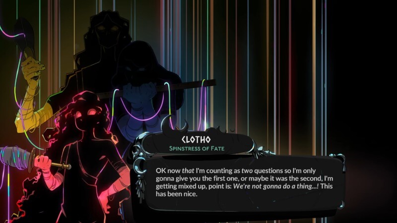 My immediate reaction was disappointment. But it gradually turned into a more introspective thought. Perhaps Supergiant’s goal was to provide a commentary on the cyclical impulses plaguing games, especially those designed with longevity in mind. A studio that never did sequels found it commercially viable to break its ethos and try to repeat history, and success means dismantling what came before and showcasing that the chase of so-called “forever games” is fraught. The Fates themselves, then, represent Supergiant speaking directly to the player. Congratulations, you’ve finally found us, even after we gave you a barrage of unnecessary, impractical tasks to prevent that from happening. You’ve ticked yet another item on your virtual to-do list. But if you’re expecting something more than a trophy on your Steam profile, you’ll be disappointed.